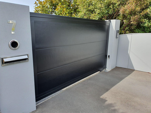 Check out this sharp looking Automatic Swinging Driveway Gate we've recently installed. The gate is manufactured in box section and has a sheet metal steel insert, with a smooth powdercoated paint finish. Opens remotely with the push of a button and also has key pad entry.